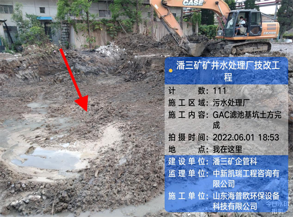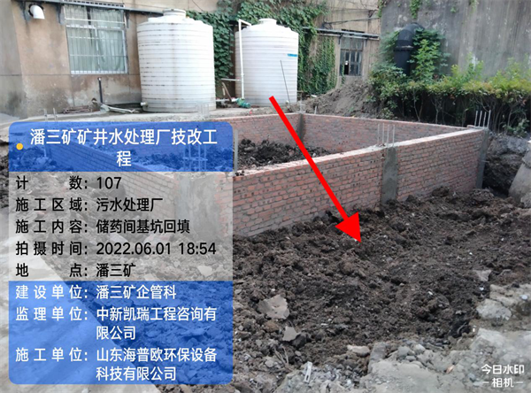 工程名稱:潘三礦礦井水處理技改工程 氣溫:34-22° 天氣:晴