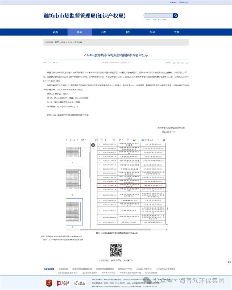海普歐環(huán)保集團(tuán)以其專業(yè)的技術(shù)團(tuán)隊和卓越的創(chuàng)新能力,不斷探索環(huán)保新技術(shù)、新方法。此次獲得濰坊市專利獎勵,既是對集團(tuán)過去努力的高度認(rèn)可,也是對未來發(fā)展的激勵與鞭策。