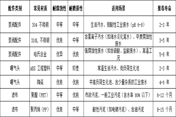 運(yùn)維便捷性原則:降低后期維護(hù)成本優(yōu)先選擇結(jié)構(gòu)簡(jiǎn)單、易拆卸的配件,減少維護(hù)工時(shí)。例如,快裝式曝氣頭無(wú)需工具即可拆卸,維護(hù)時(shí)間可縮短至傳統(tǒng)曝氣頭的 1/3;選擇濾布時(shí),優(yōu)先選用可快速更換的卡扣式濾布,而非螺栓固定式,避免因拆裝復(fù)雜導(dǎo)致停機(jī)時(shí)間延長(zhǎng)。