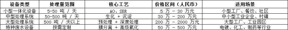 在工業生產與環保要求日益嚴格的當下,廢水處理設備已成為企業實現達標排放、踐行綠色發展的核心設施。然而,“廢水處理設備價格” 始終是企業采購時關注的焦點。由于設備類型、處理規模、工藝技術等差異,其價格區間跨度極大,從數萬元到上千萬元不等。本文將系統解析影響廢水處理設備價格的關鍵因素,為企業提供專業的選購參考。