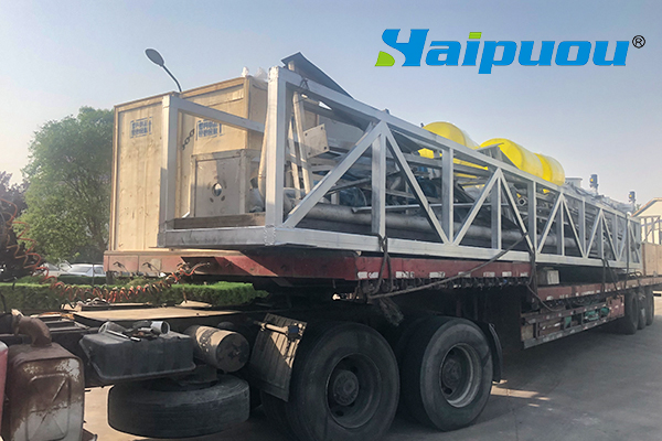 2、將設(shè)備吊至平流池上,四個行走輪安放于鋼軌上,按基準線找平,校核安裝尺寸。
